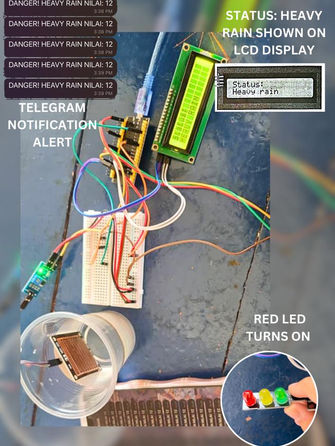 A circuit design was created to ensure that electricity flowed through every wire and that the components functioned properly. The electrical components, such as the rain sensor, were controlled by the ESP32, which was programmed using the Arduino Software, also known as the Arduino IDE. The sensors were used to determine the rainfall intensity each hour. Following the conclusion of the system's coding, testing and problem repair were performed to ensure that each sensor could produce real data. The system's housing was created following the completion of the various software components.